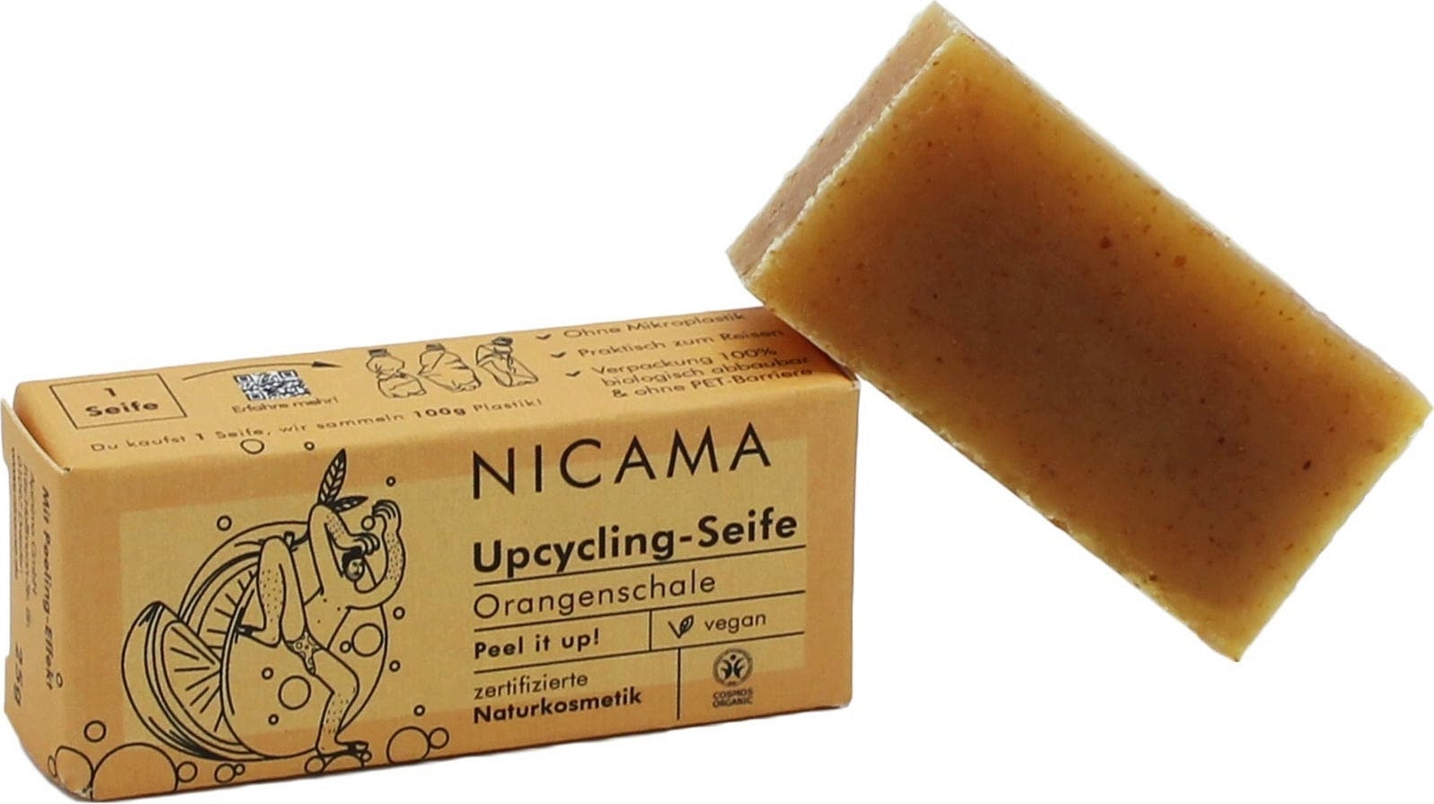 NICAMA Upcycling-Seife mit Peelingeffekt - Orangenschale, 25 g
