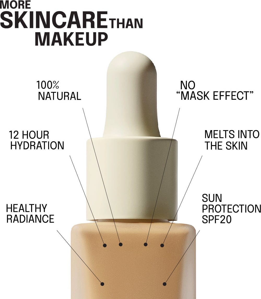 Die Serum Foundation vereint Hautpflege und Make-up in einer leichten Textur. Ihre Formulierung mit Hyaluronsäure, Arganöl, Squalan und Vitamin C bietet nicht nur eine gute Deckkraft mit natürlichem Finish, sondern zugleich auch eine optimale Feuchtigkeitsversorgung. So fühlt sich die Haut genährt und gepflegt an, während der Teint geebnet wird. Zusätzlich bietet das Produkt einen mineralischen Lichtschutzfaktor 20.