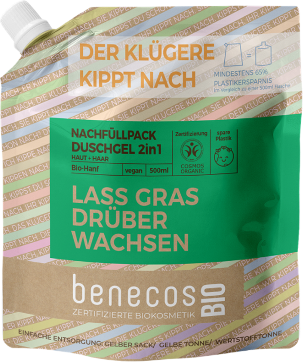 Benecos Gel Douche 2en1 benecosBIO au Chanvre, Recharge 500ml
