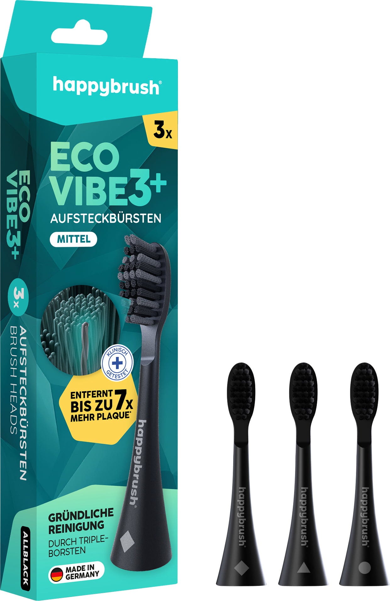 happybrush ECO VIBE 3+ Têtes de Brosse AllBlack, 3 pièces