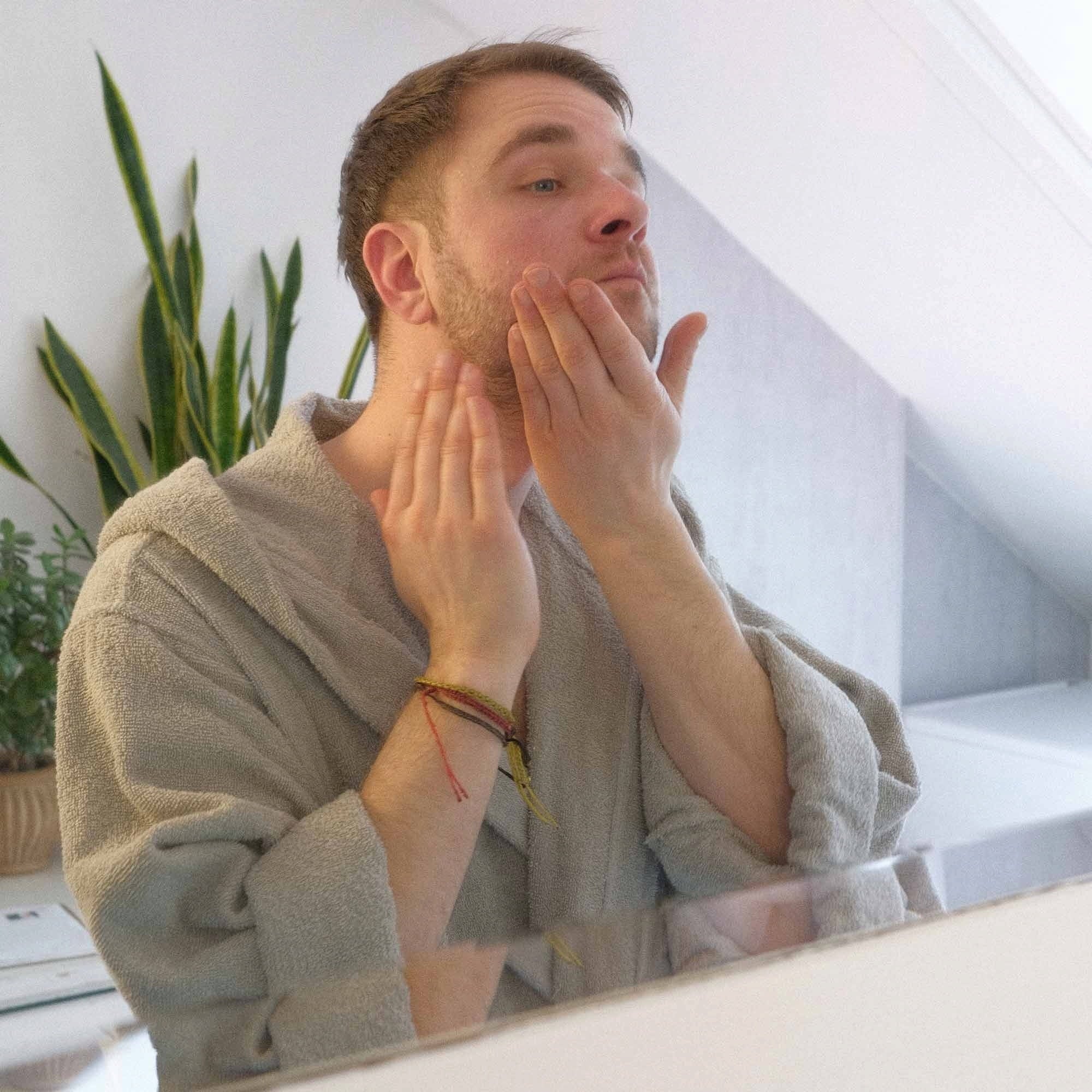 - Massez en mouvements circulaires, puis rincez abondamment à l’eau claire.