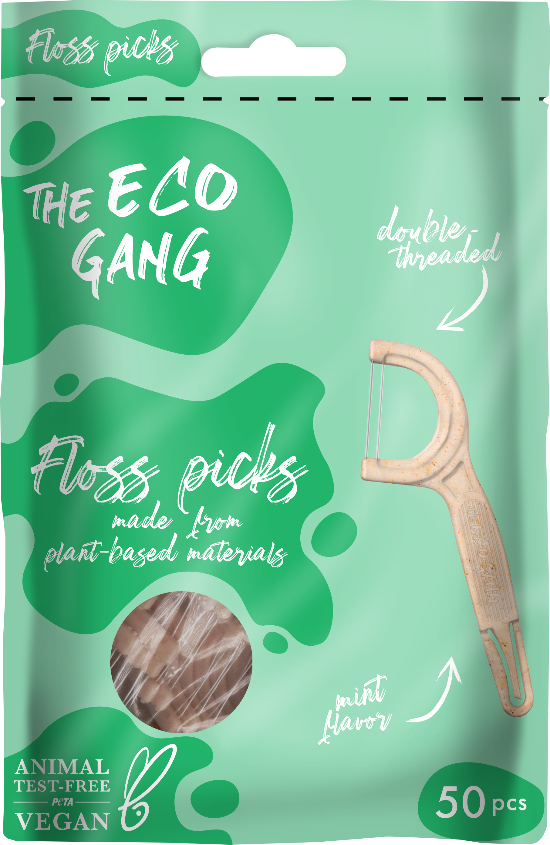 The Eco Gang Floss Picks, Neutral (50 pièces)
