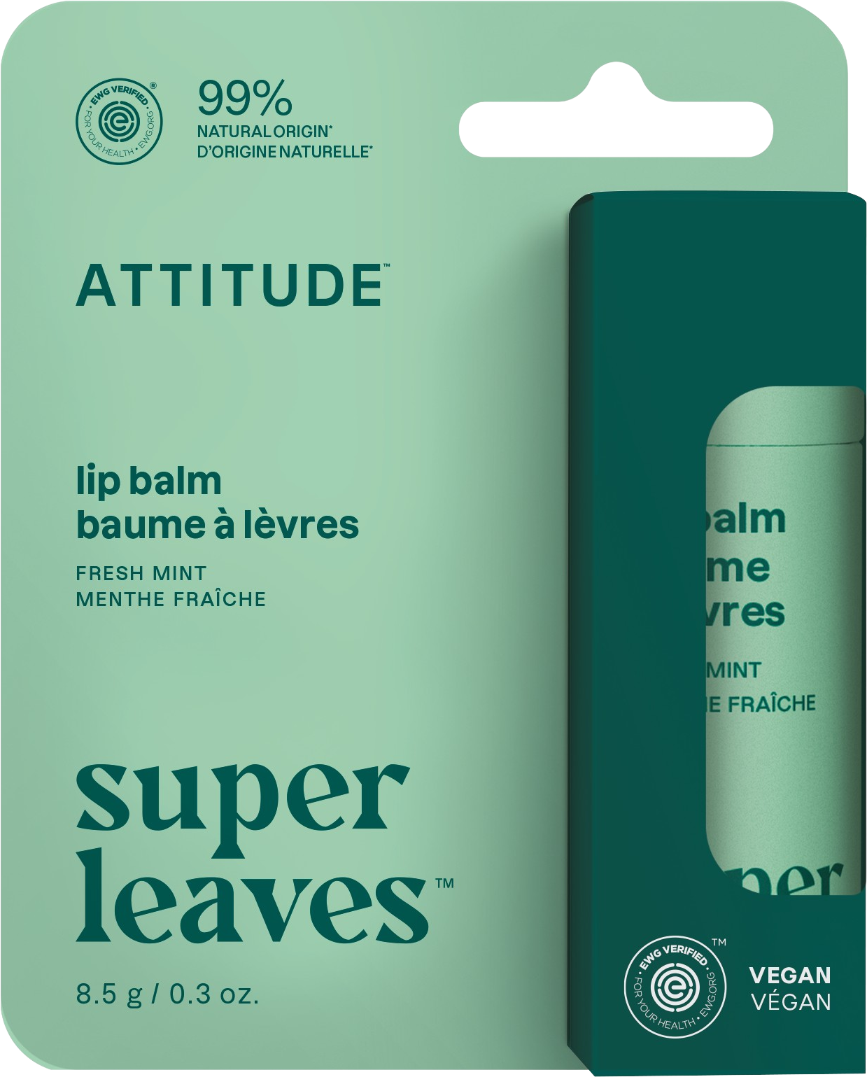Attitude Leaves Bar Lip Balm, Mint (8,50 g)