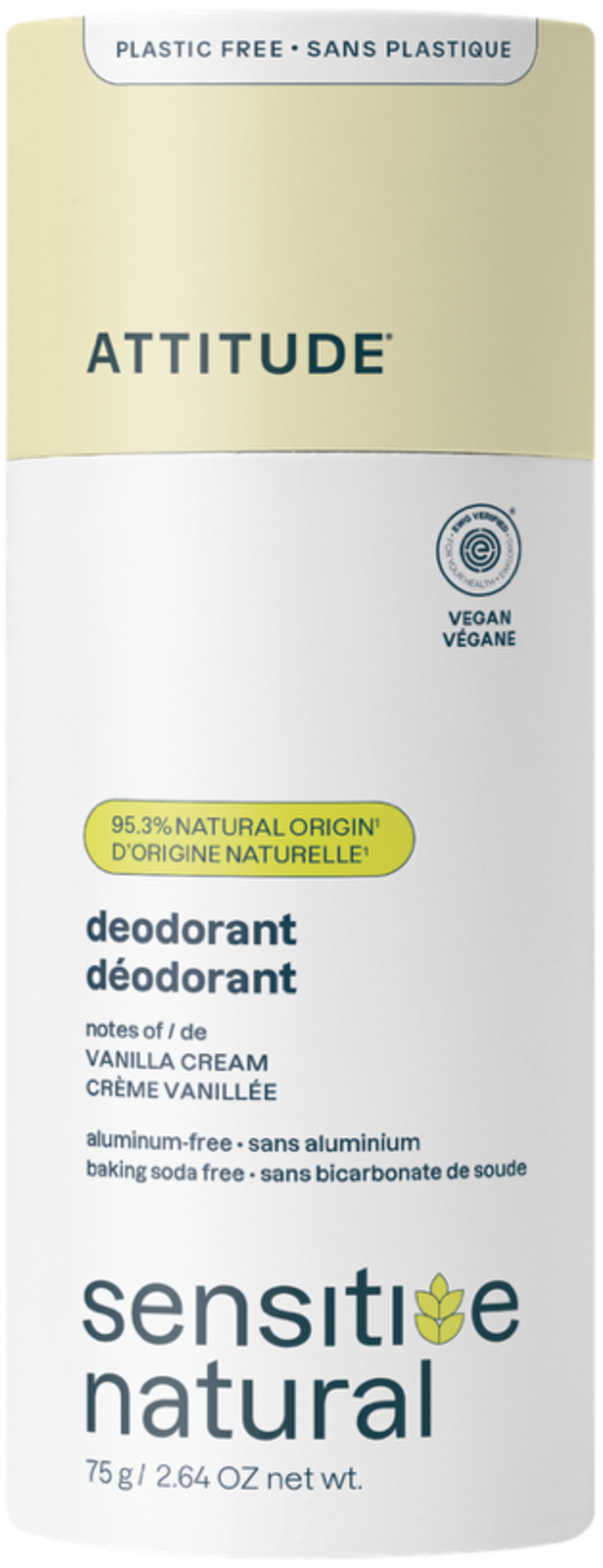 Attitude sensitive natural Deodorant, Vanilla cream (75 g)