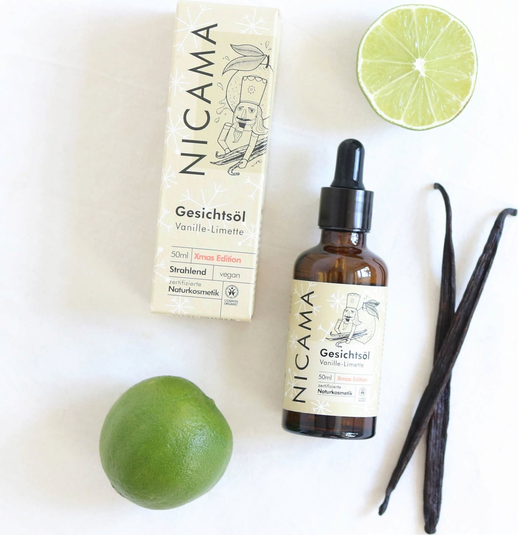 NICAMA Xmas-Edition Gezichtsolie - Vanille/Limoen, 50 ml