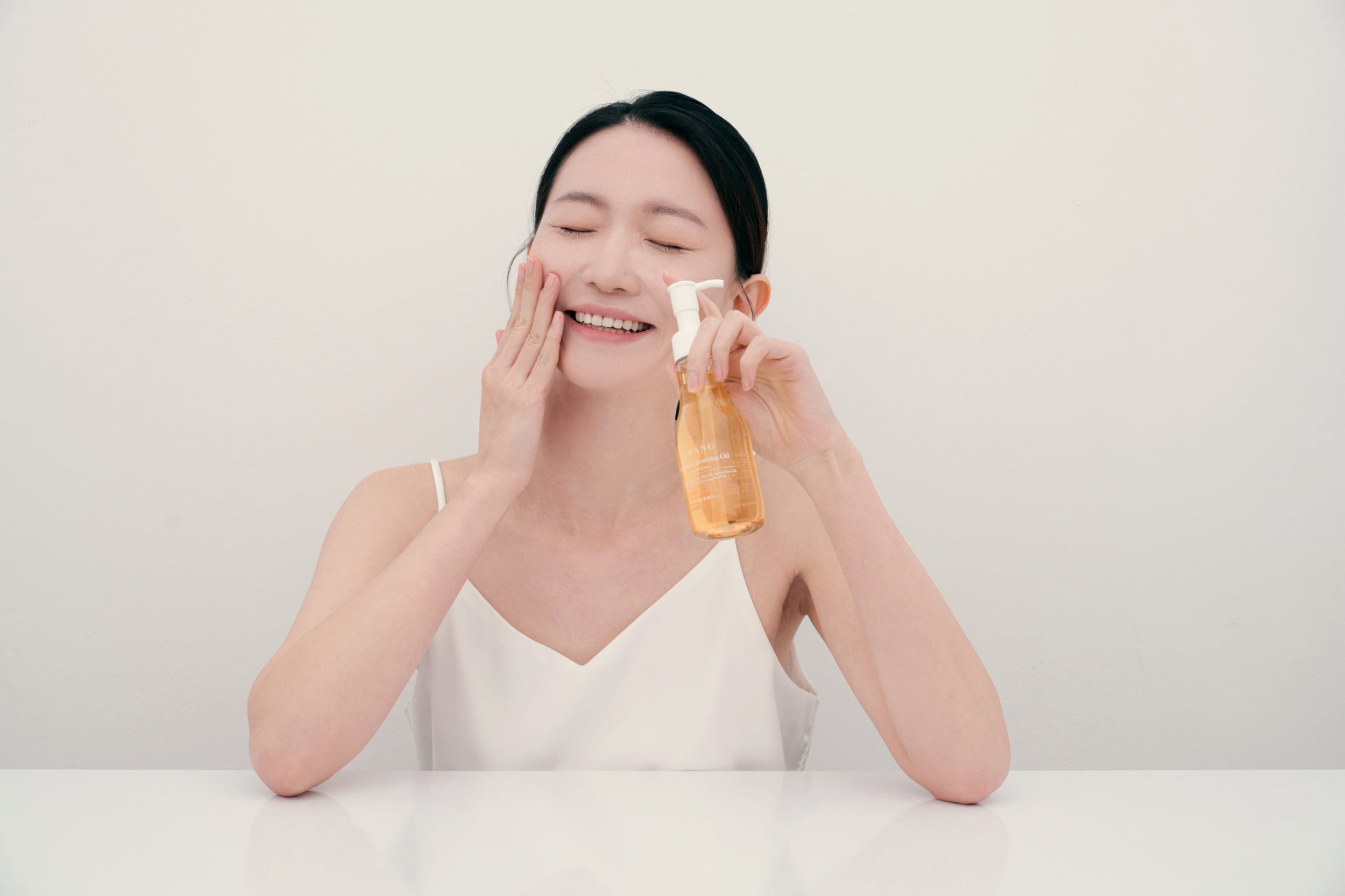 - Breng 2-3 pompen reinigingsolie aan op de droge huid.